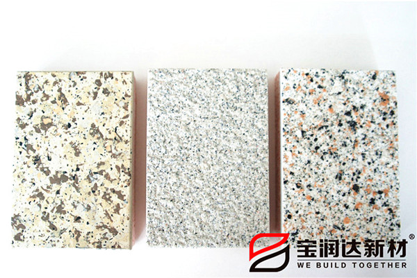 寶潤達(dá)一體板飾面層采用真石漆,多彩漆,水包水,水包砂,乳膠漆,實(shí)色/金屬氟碳超3000種顏色定制,可根據(jù)石材定做樣品